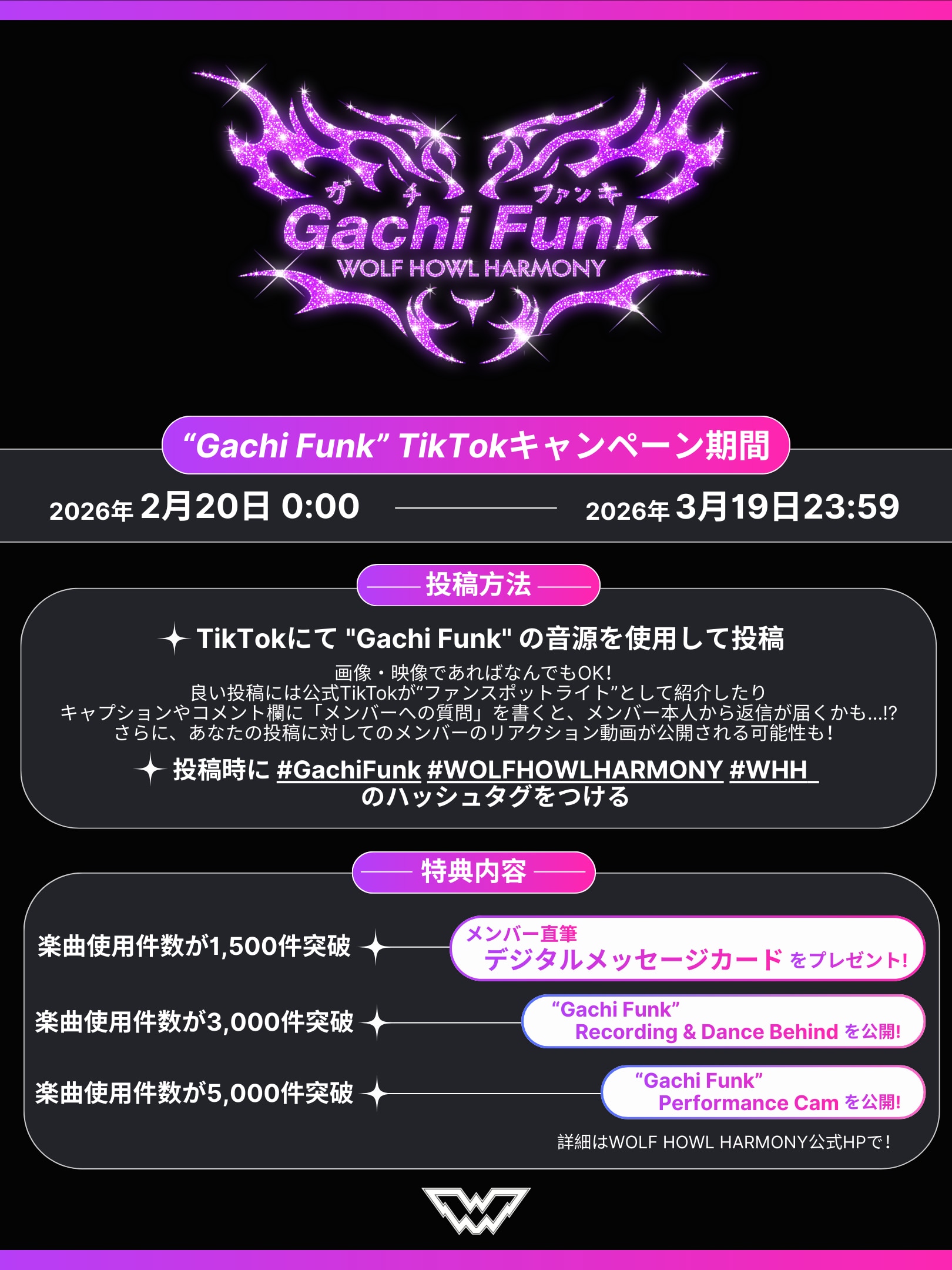 To celebrate the release of WOLF HOWL HARMONY new song "Gachi Funk," we're holding a TikTok campaign!