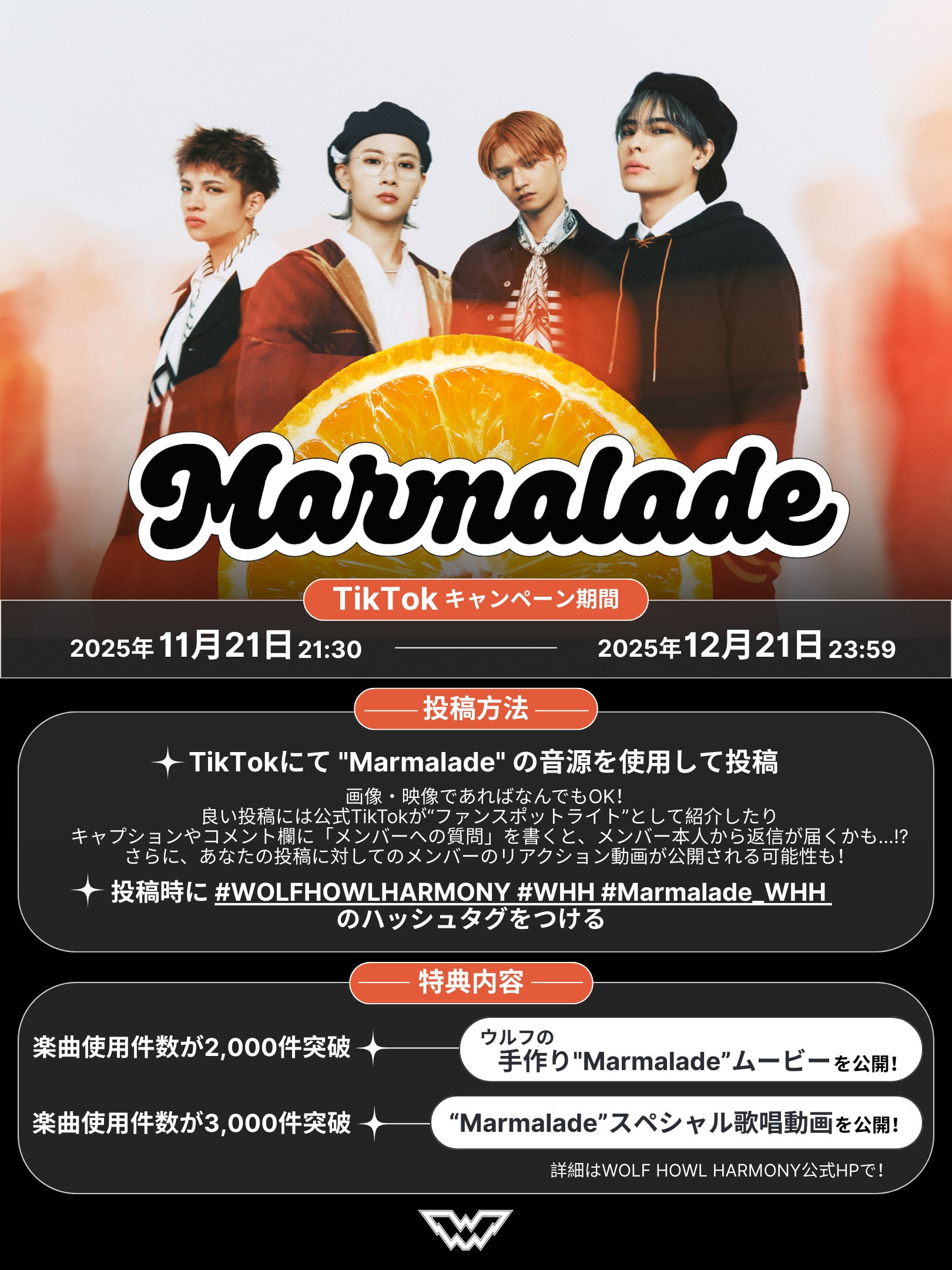 WOLF HOWL HARMONY 新曲「Marmalade」配信記念!